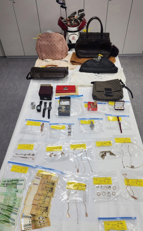 압류 물품 중에는 명품 브랜드 핸드백, 고급 시계, 금반지, 골드바, 최신 골프채 세트 등이 포함됐다.