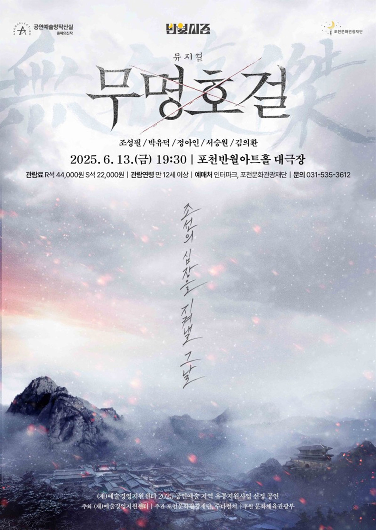 포천문화관광재단은 (재)예술경영지원센터의 ‘2025 공연예술 유통지원 사업’ 선정작인 뮤지컬 <무명호걸: 無名豪傑>을 오는 6월 13일 포천반월아트홀 대극장에서 선보인다.